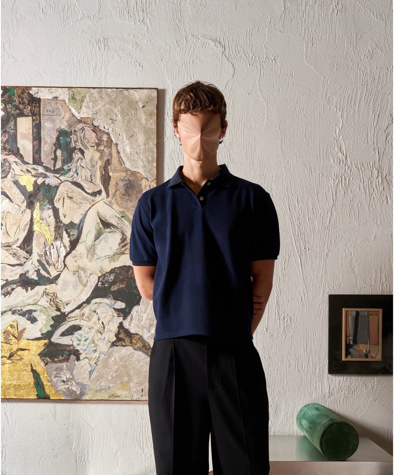 Navy Polo Shirt. Crafted from premium cotton, this sleek polo features a buttoned collar and short sleeves, offering a classic and versatile addition to any wardrobe.